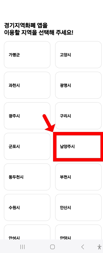 - 스마트폰에서 '경기지역화폐' 앱을 실행합니다.