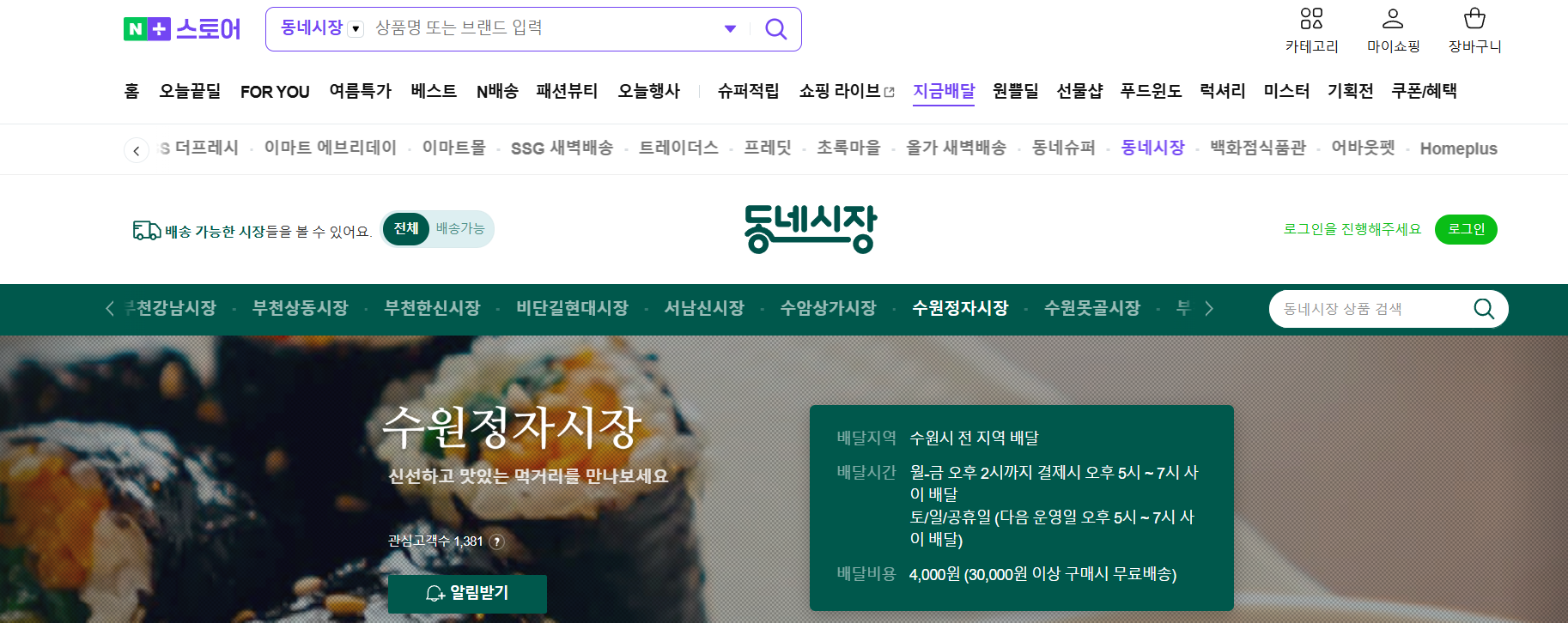 그렇다면 네이버의 '동네시장 장보기' 서비스를 이용해보세요.