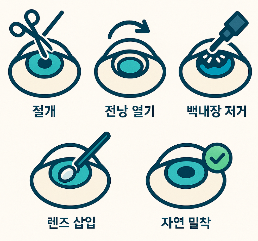 | 5 | 후낭혼탁 (시력 저하 재발) | 인공수정체 뒤쪽 막이 혼탁해지며 다시 흐릿해짐 | 개인차 있음 | 레이저 시술(YAG 레이저)로 간단히 제거 가능 |