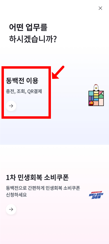 - '동백전' 앱을 실행합니다.