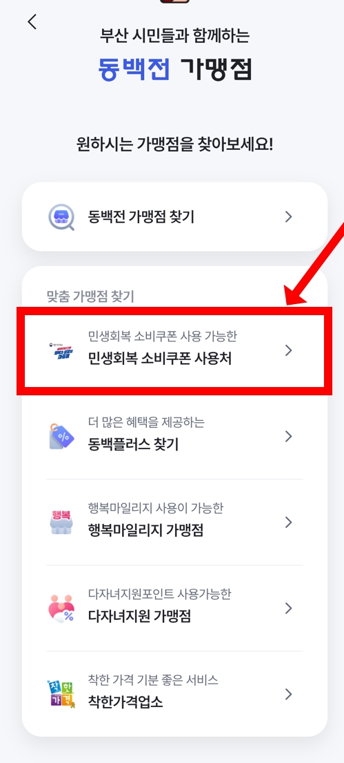 아래는 현재 부산에서 민생회복 지원금 사용이가능한 매장입니다