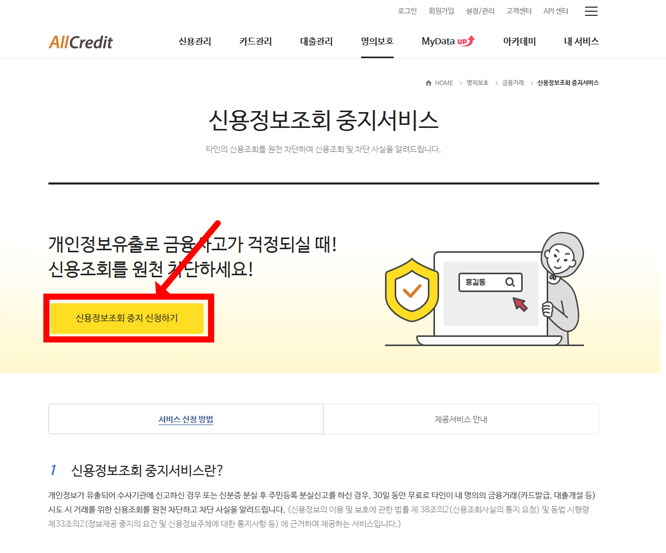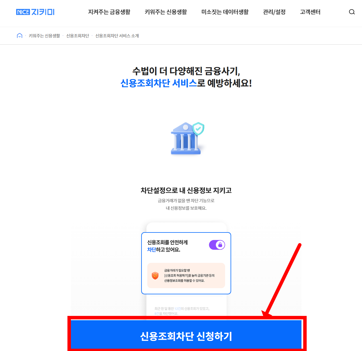 - 신용정보 조회 차단 서비스 가입( 내 신용정보를 아무나 못 보게 막는 서비스. 누가 몰래 내 이름으로 핸드폰 개통하려 하면, 막을 수 있다.)