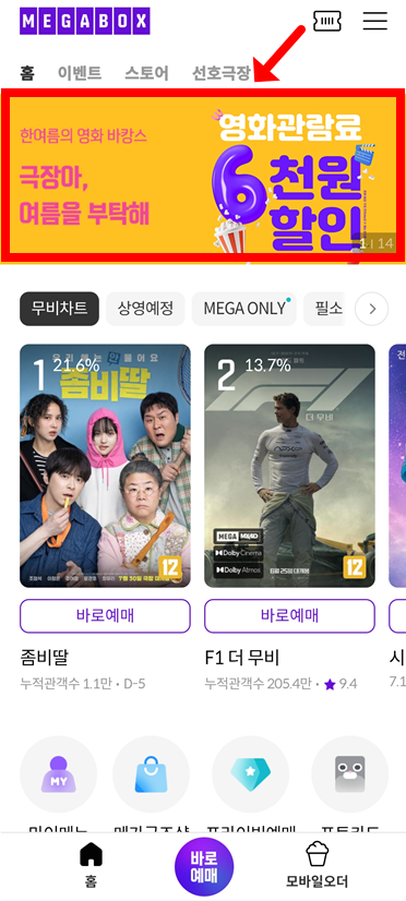 - 결제 단계에서 '관람권/할인쿠폰' 메뉴를 선택하고, 다운로드한 '정부 6천원 할인권'을 적용하면 끝!