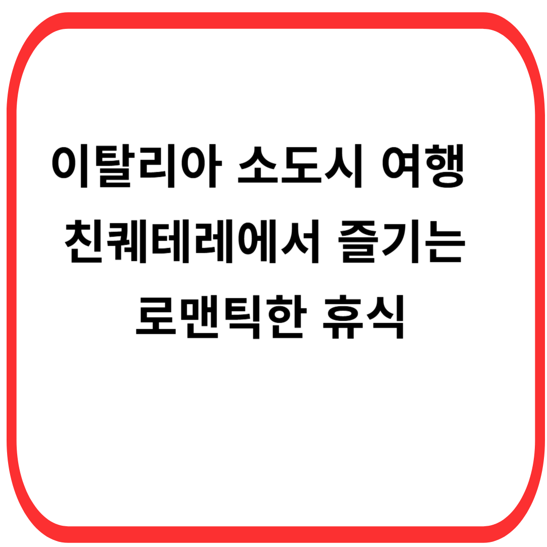 감성적인 이탈리아 여행! 한적한 해안 마을 친퀘테레에서 여유로운 시간을 보내세요.