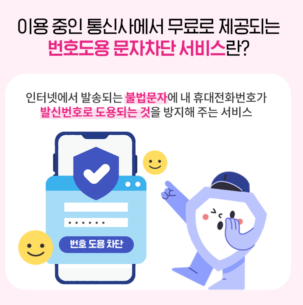 - 방법: 통신사 앱 → '번호 도용 문자 차단' 검색 → 가입.