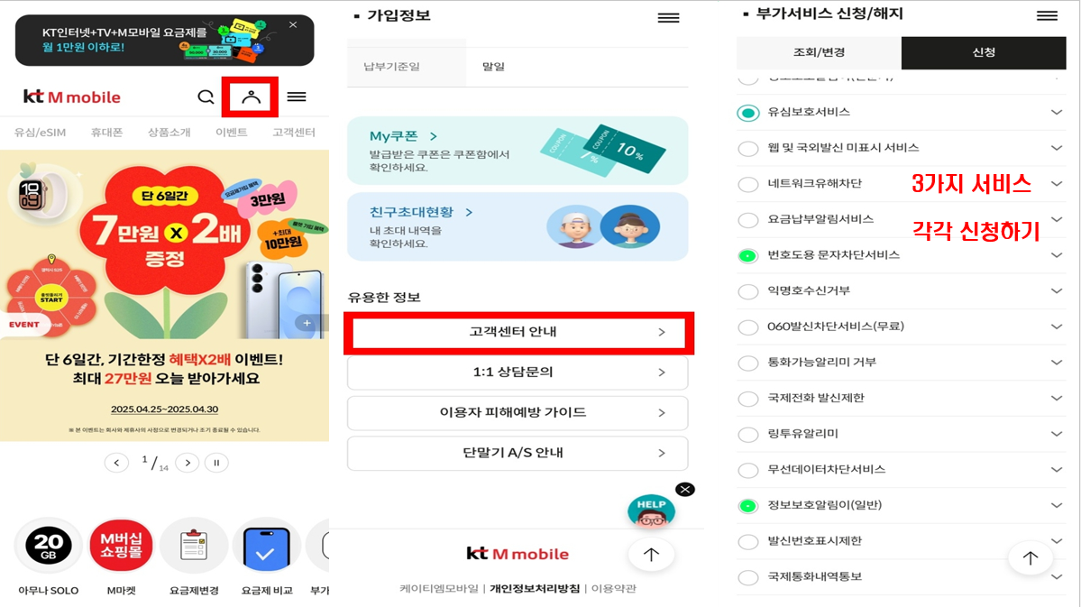 | 유심보호 서비스 가입 | 통신사 앱 가입 | 무단 기기 변경 방지 |