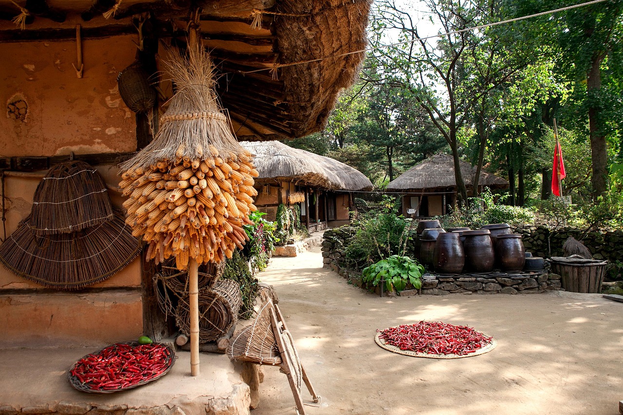 - 초가집 돌담길